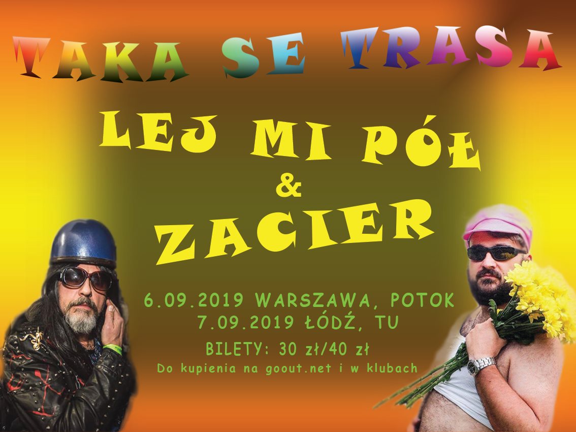 Lej Mi Pół oraz Zacier na wspólnej WIELKIEJ trasie koncertowej po Polsce!!!Już we wrześniu zapraszamy na koncerty w Warszawie oraz Łodzi.Więcej info na wydarzeniach:Lej Mi Pół